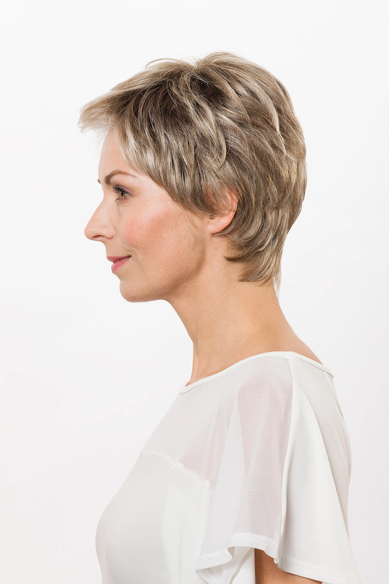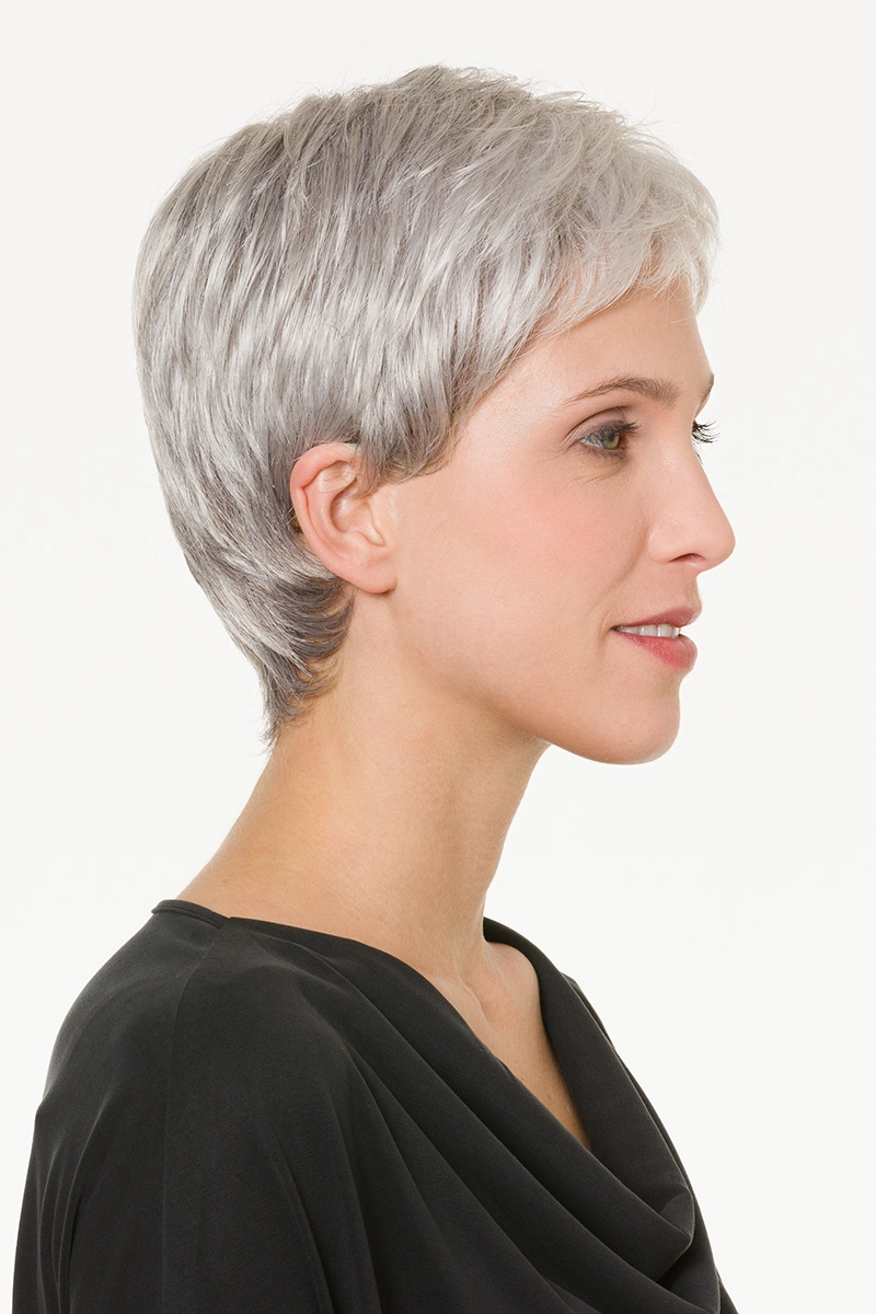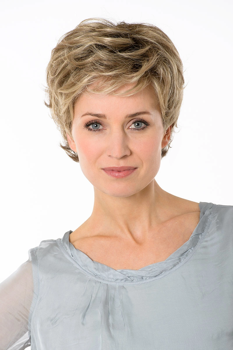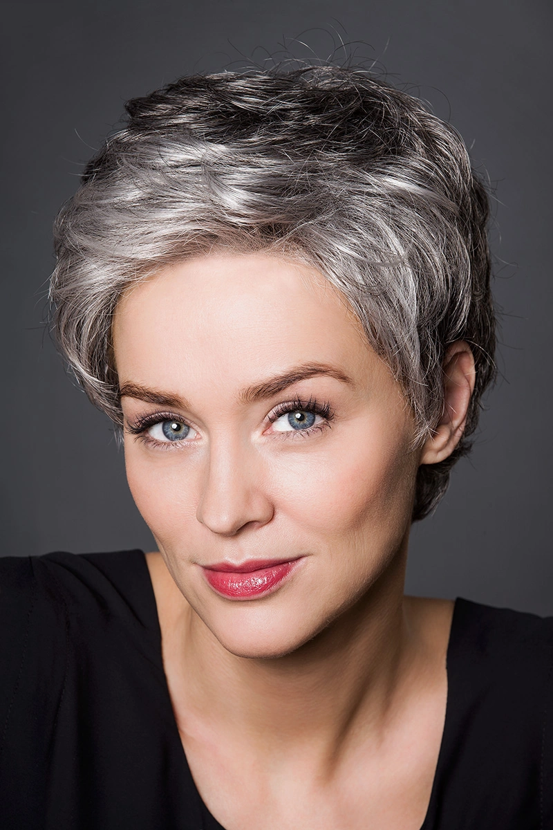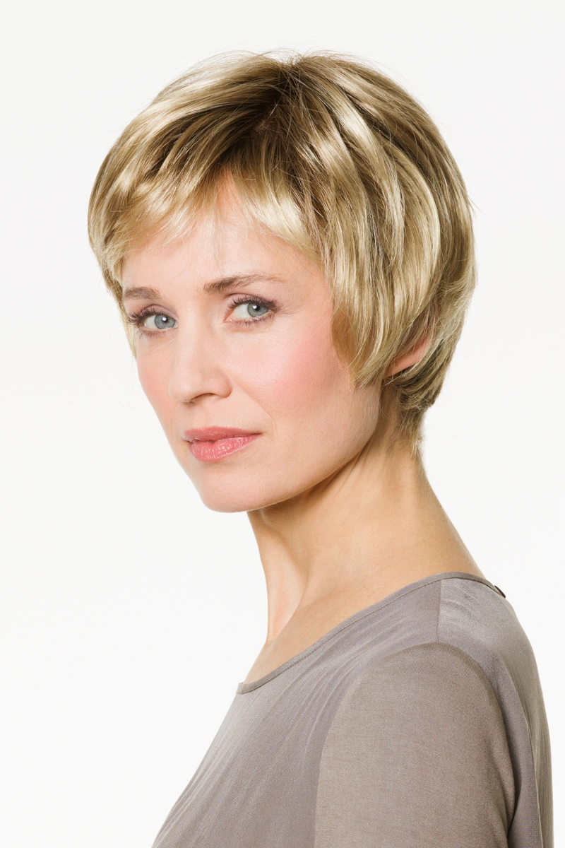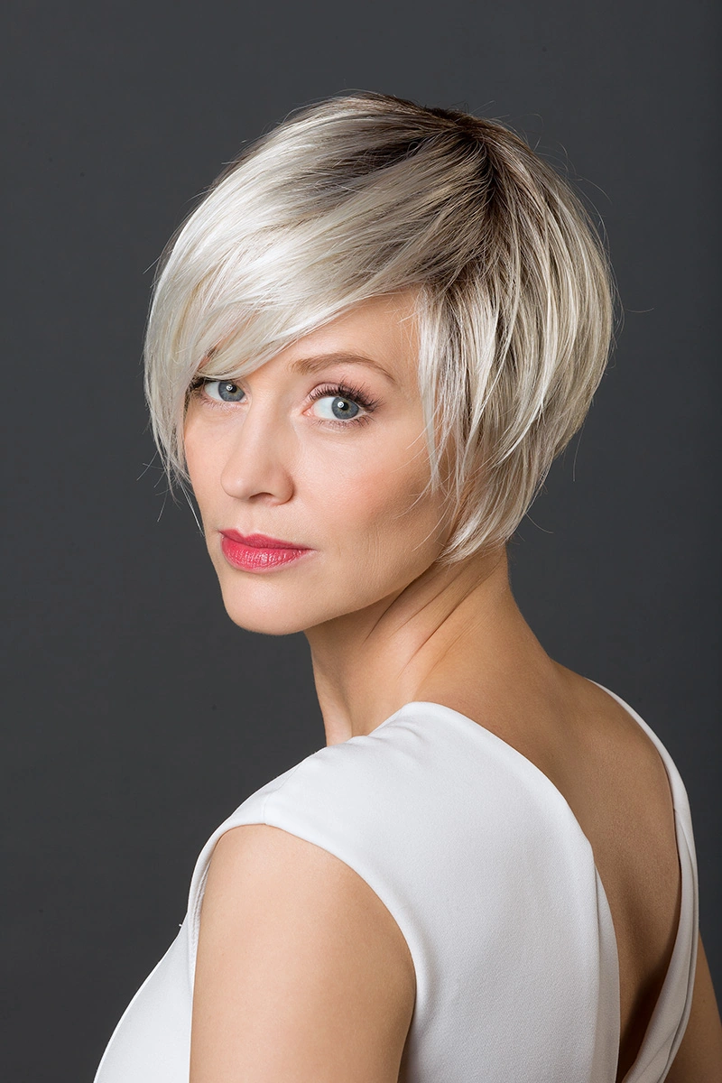 Moderne Kunsthaarperücken bieten eine große Auswahl an Längen und Farbtönen. Neben natürlichen Blond- und Braunnuancen sind auch melierte Varianten, Grauabstufungen oder Modelle mit dunklerem Ansatz erhältlich.