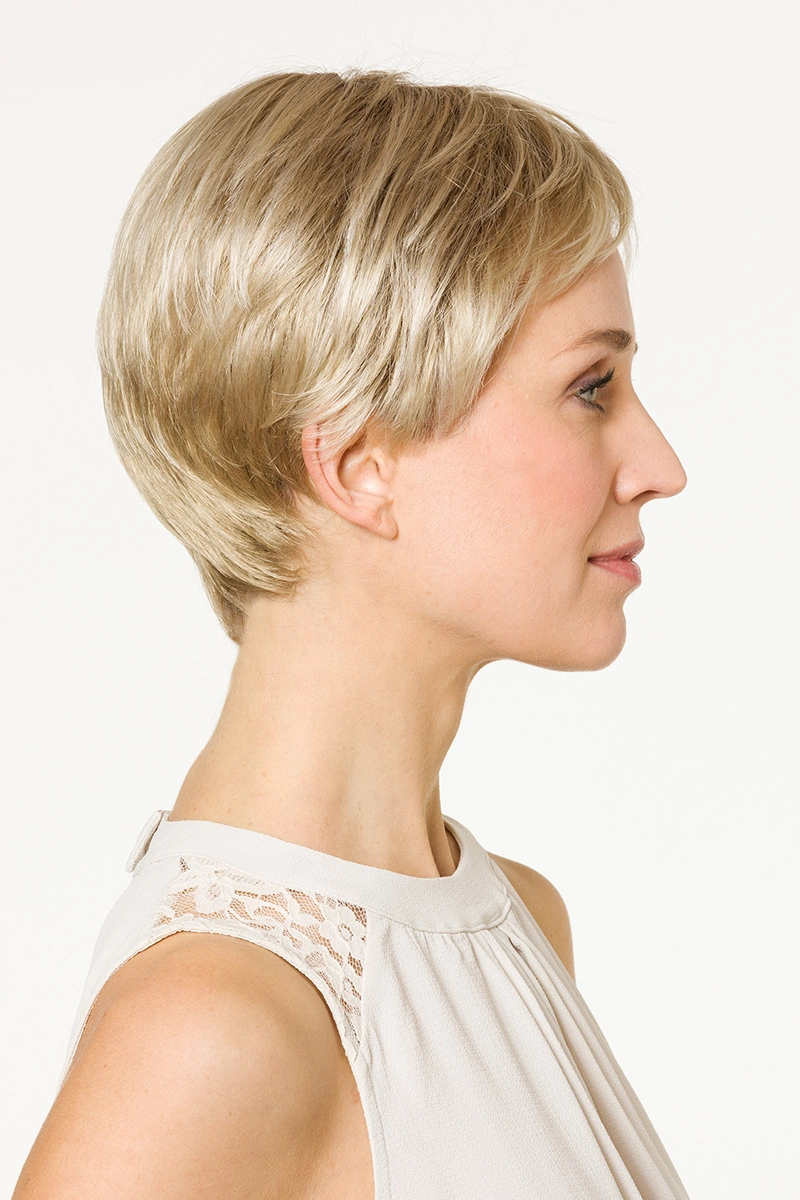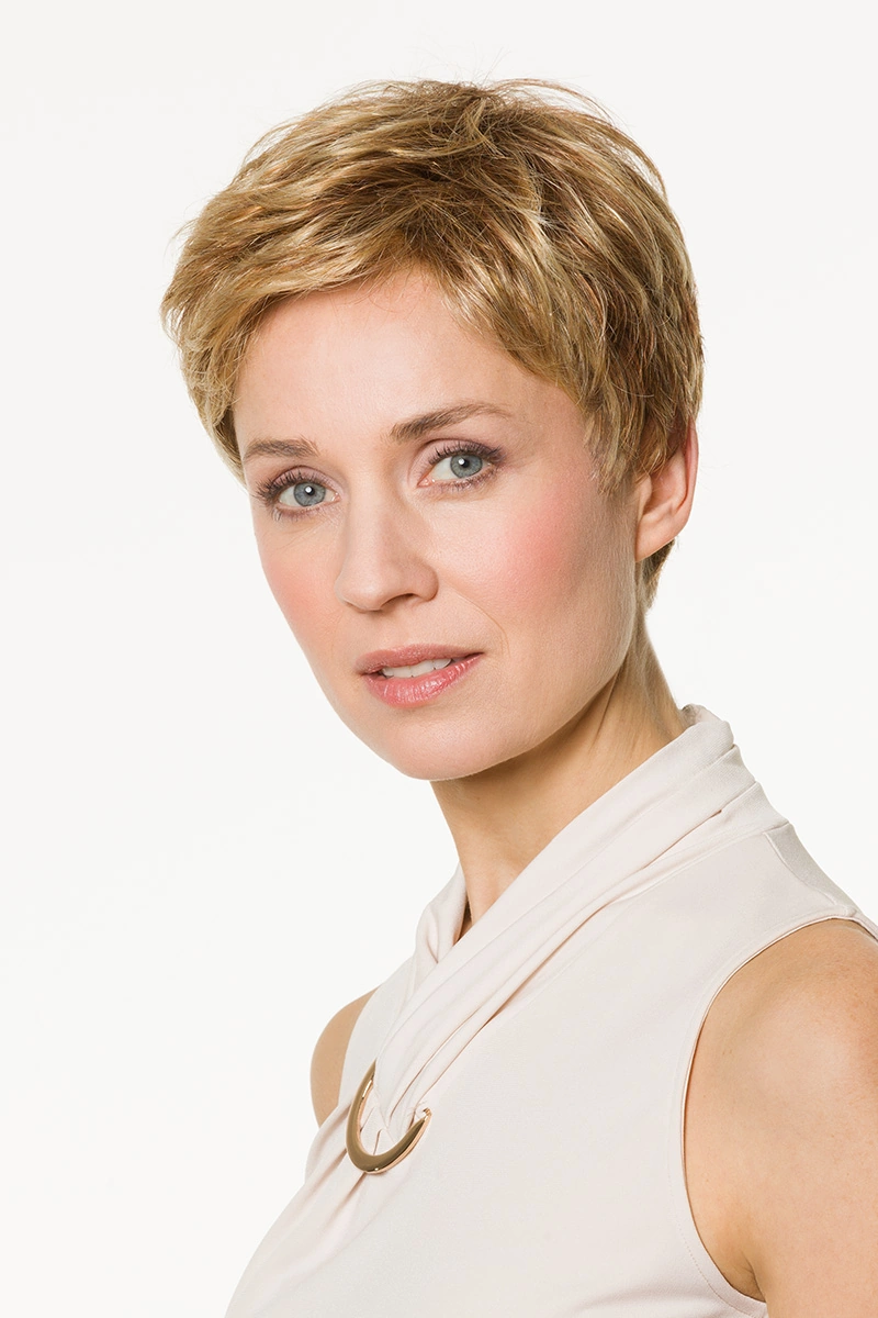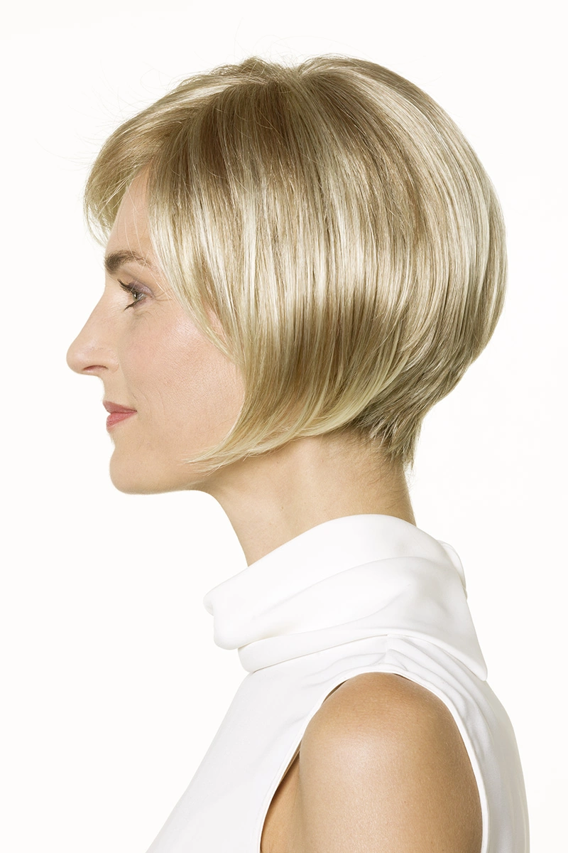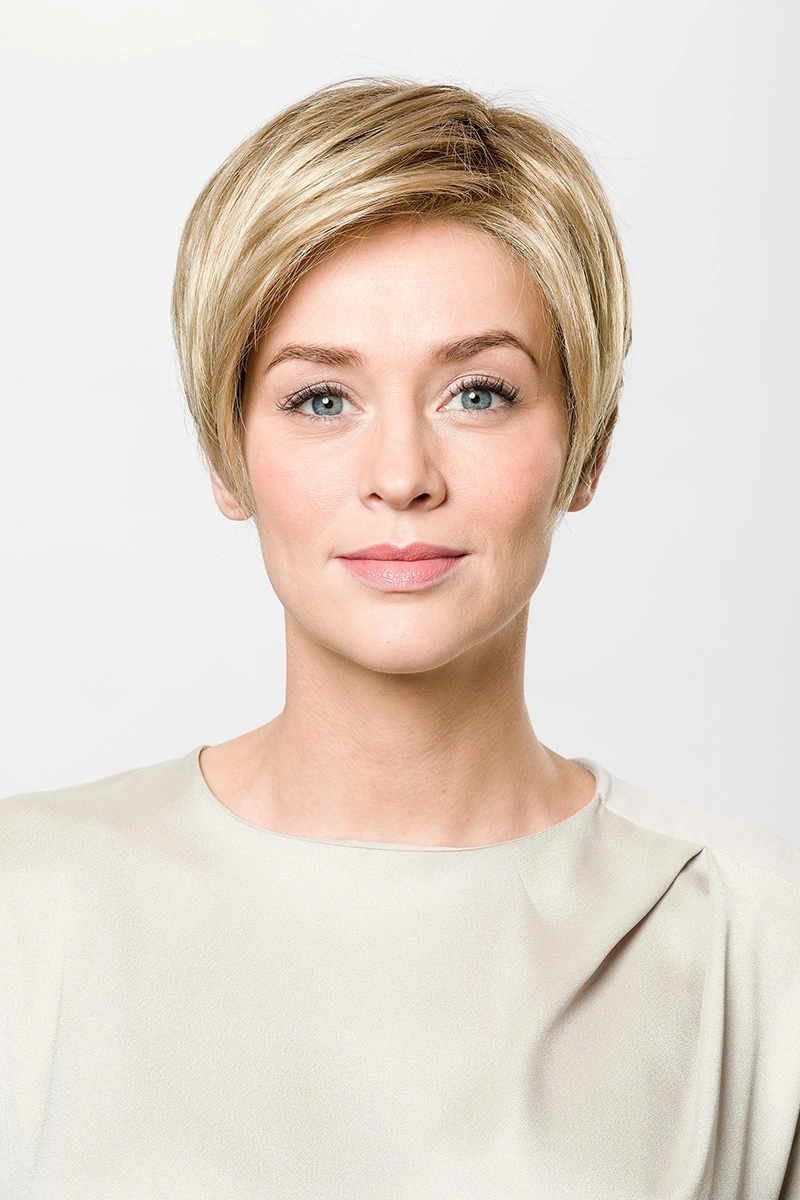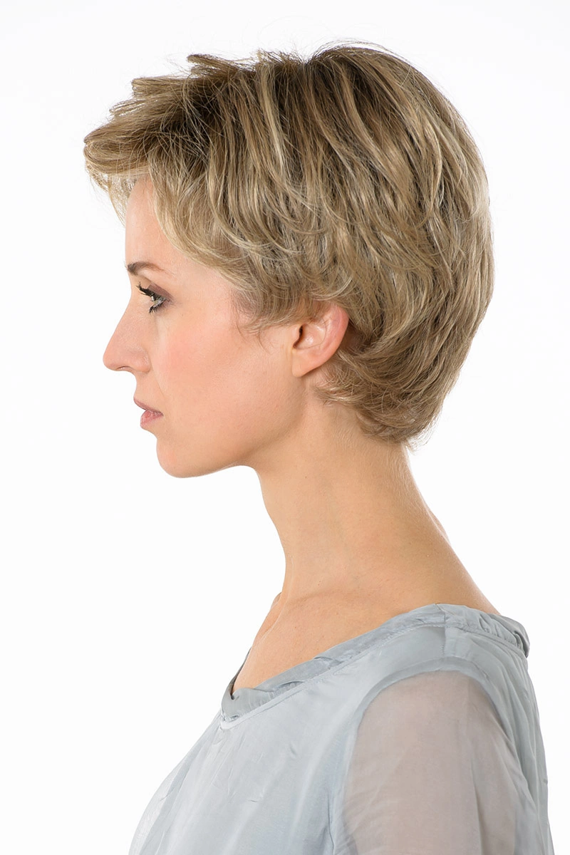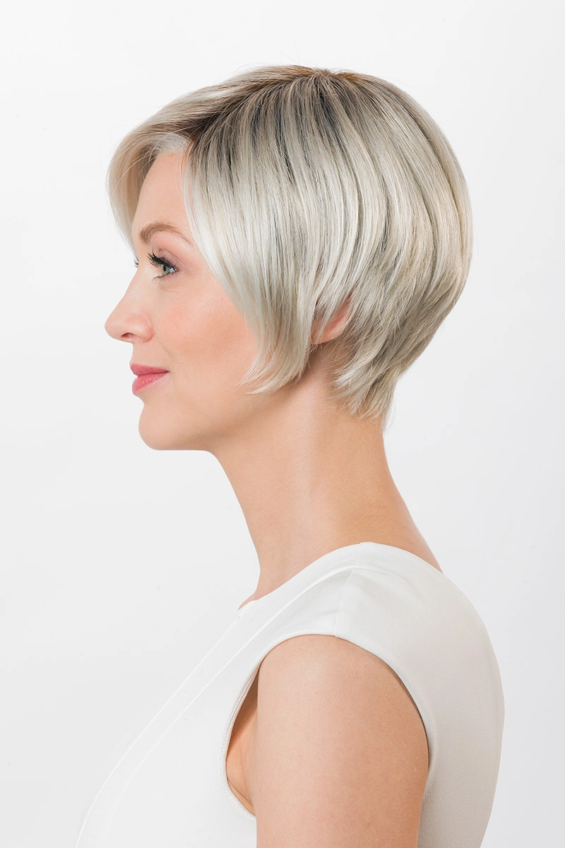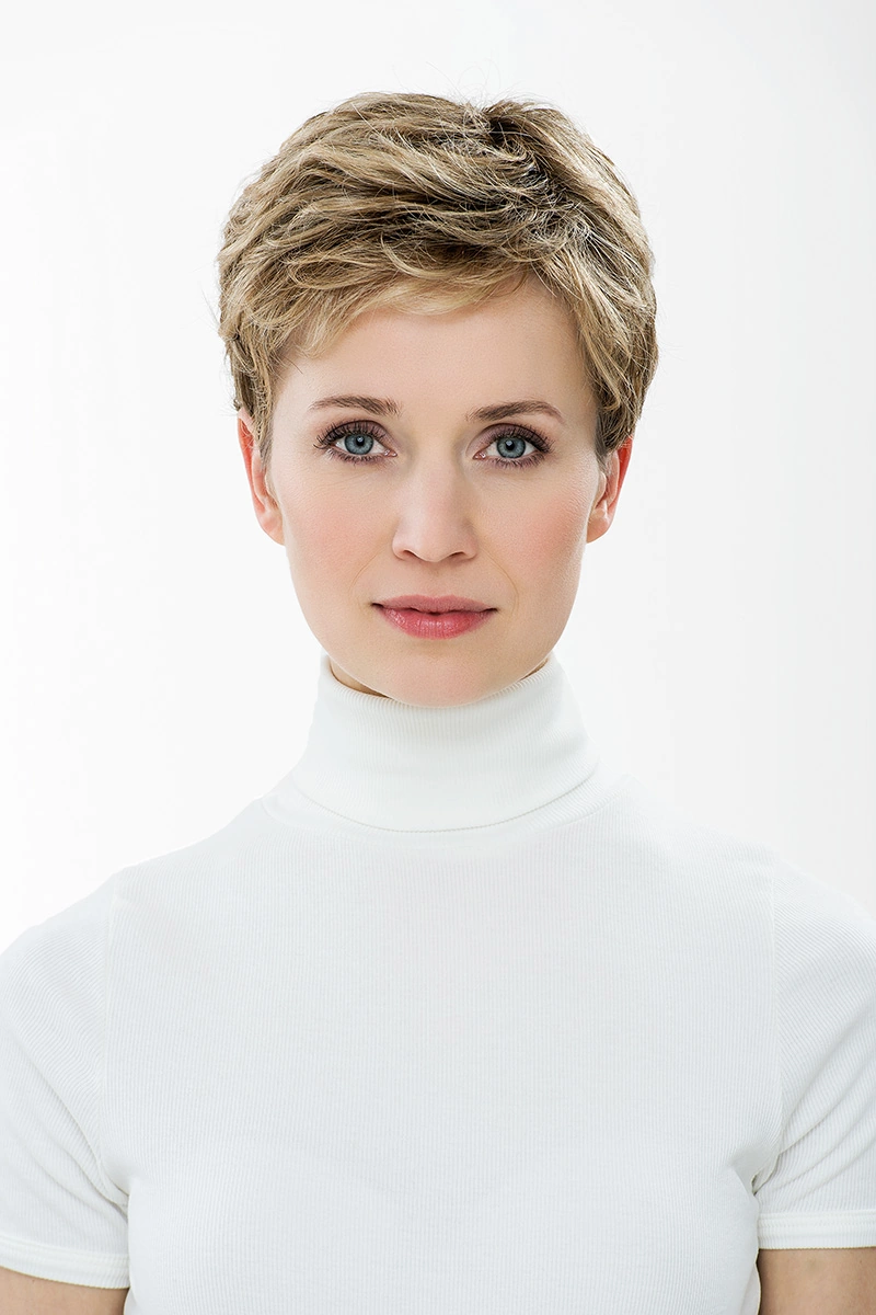 Moderne Kunsthaarperücken bieten eine große Auswahl an Längen und Farbtönen. Neben natürlichen Blond- und Braunnuancen sind auch melierte Varianten, Grauabstufungen oder Modelle mit dunklerem Ansatz erhältlich.