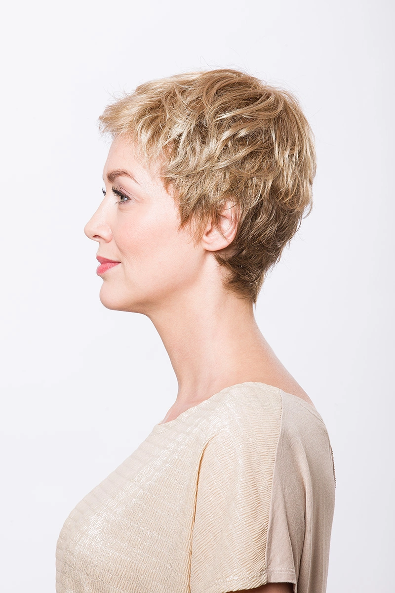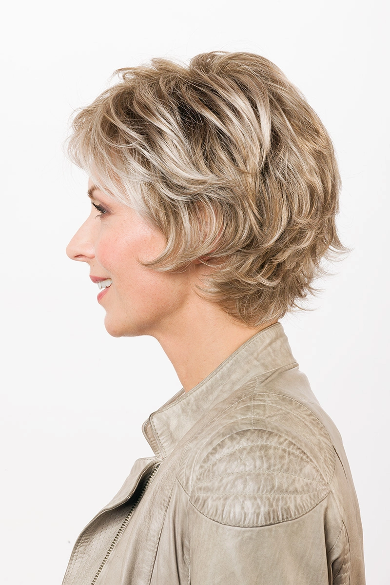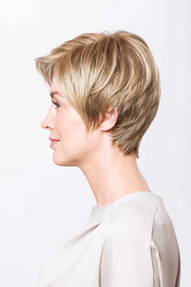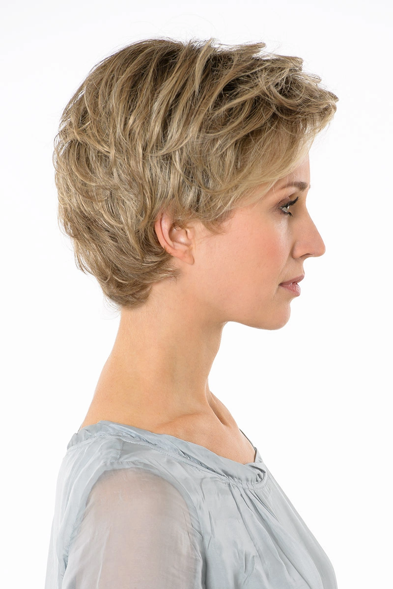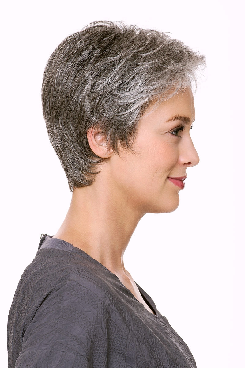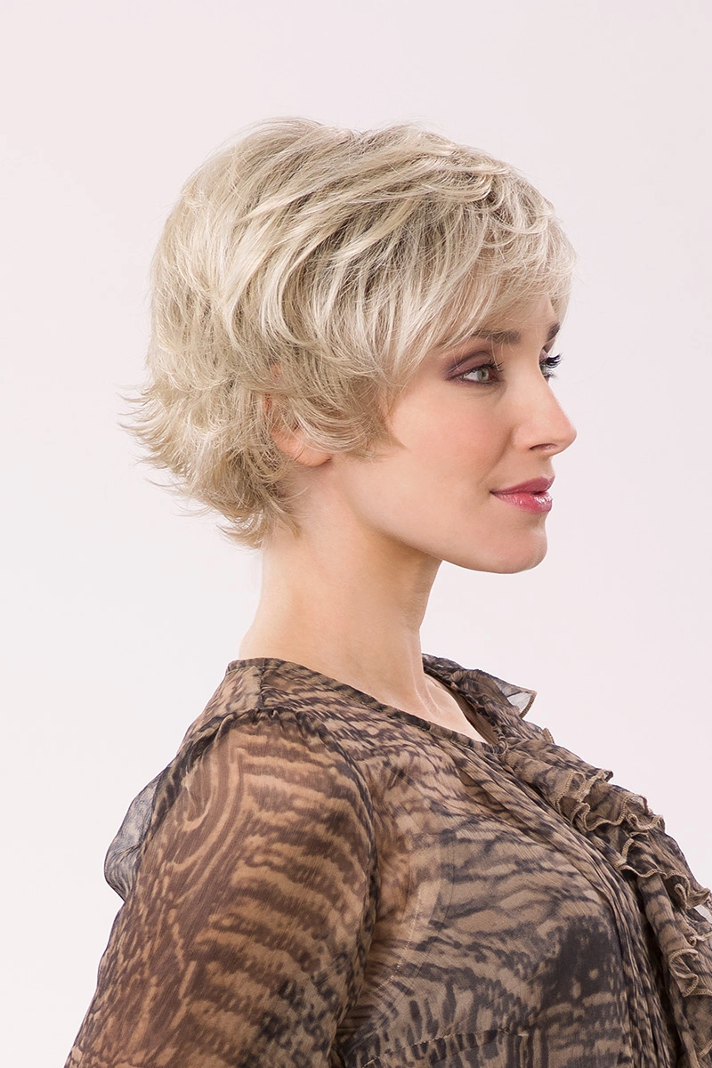 Moderne Kunsthaarperücken bieten eine große Auswahl an Längen und Farbtönen. Neben natürlichen Blond- und Braunnuancen sind auch melierte Varianten, Grauabstufungen oder Modelle mit dunklerem Ansatz erhältlich.