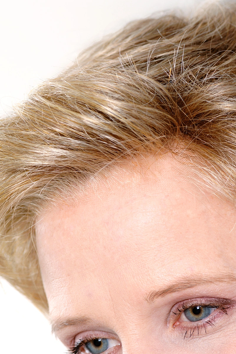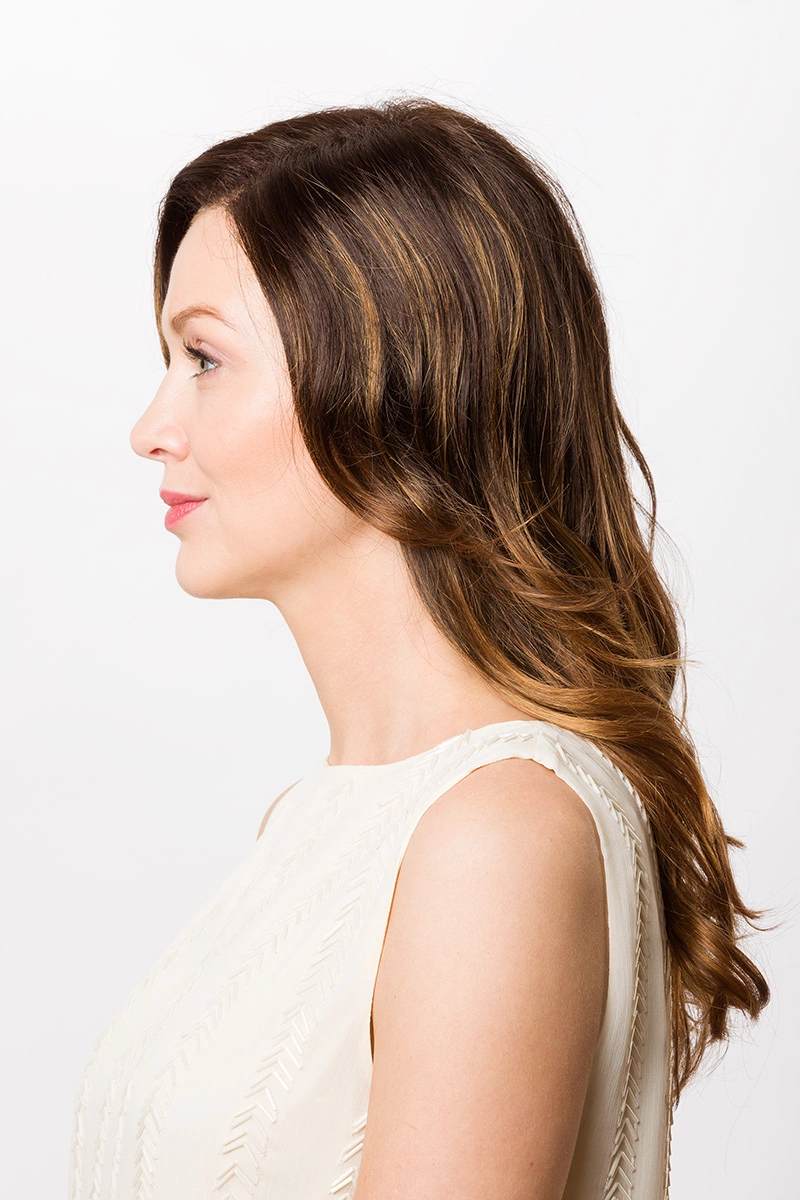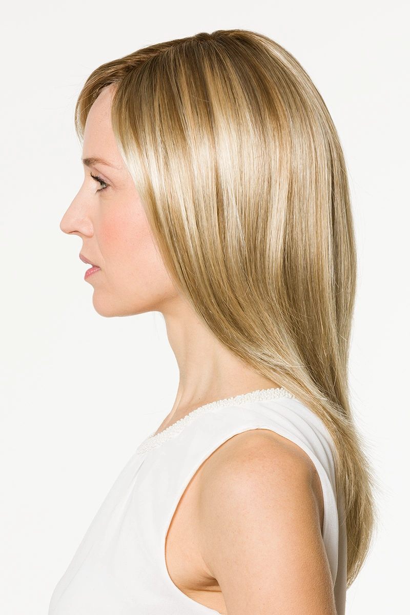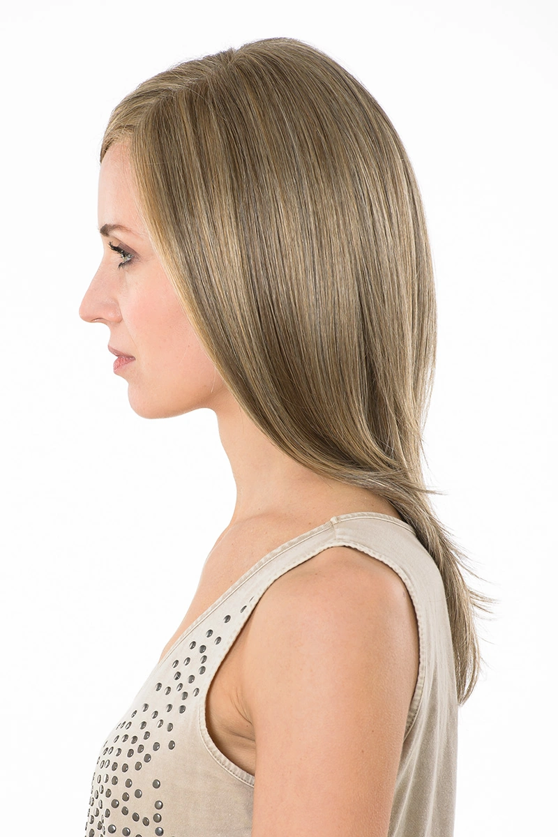 Durch die feine Verarbeitung im Ansatzbereich entsteht ein ruhiger, natürlicher Übergang. Die Haare sind sorgfältig eingearbeitet und wirken im Gesamtbild gleichmäßig und stimmig.